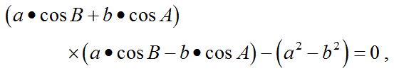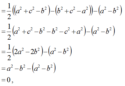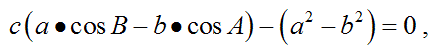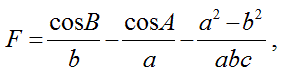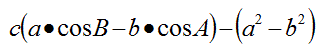 この式から、変数cを減らします。それは、以下の、第1余弦定理を利用します。