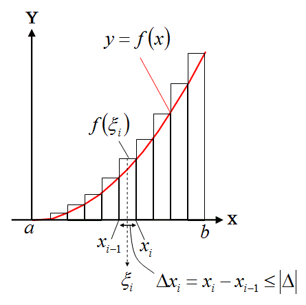 その閉区間の小区間への分割の仕方および小区間内の点ξi(i = 1, 2, . . . , n) の位置のとり方に関係なく、各点の関数値の和が一通りに定まる(積分可能)か否かを調べることができます。