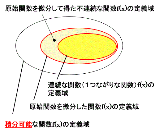 この不定積分F(x)が1つながりに連続な変数xの範囲では、関数f(x)が積分可能です。