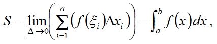 すべての小区間の長さが,いずれも 0 に近づくように n を限りなく大きくするとき, ①の点の位置のとり方にかかわらず, 和Snは一定の極限値に近づくことが知られている. この極限値を,関数 f(x) の区間 [a, b] における定積分といい