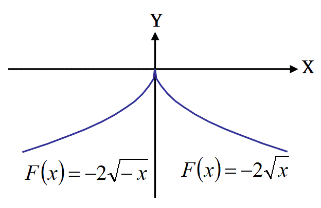 この不定積分F(x)は、不定積分が、被積分関数F(x)の定義域のx<0だけで定義されることになるのが気持ち悪かったので、被積分関数f(x)のx>0の範囲を勝手に定義して、その全体の不定積分を作りました。関数f(x)の部分毎に作った原始関数を、連続につないで総体の不定積分を作りました。