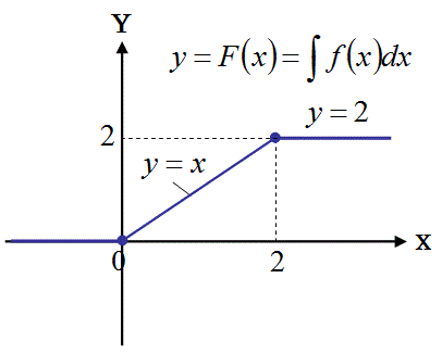 この不定積分の求め方は、上図の関数の部分毎に原始関数=不定積分F(x)を求め、それらの不定積分を、連続になるようにつなげば、以下のグラフのように、総体の不定積分が出来上がります。