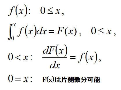 この関数F(x)を微分すると以下の関数f(x)になる。
