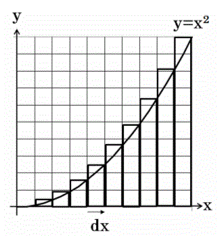 以下のグラフのように、面積を分割して、分割した要素の総計を求めてグラフの面積を計算する手法が「積分」です。